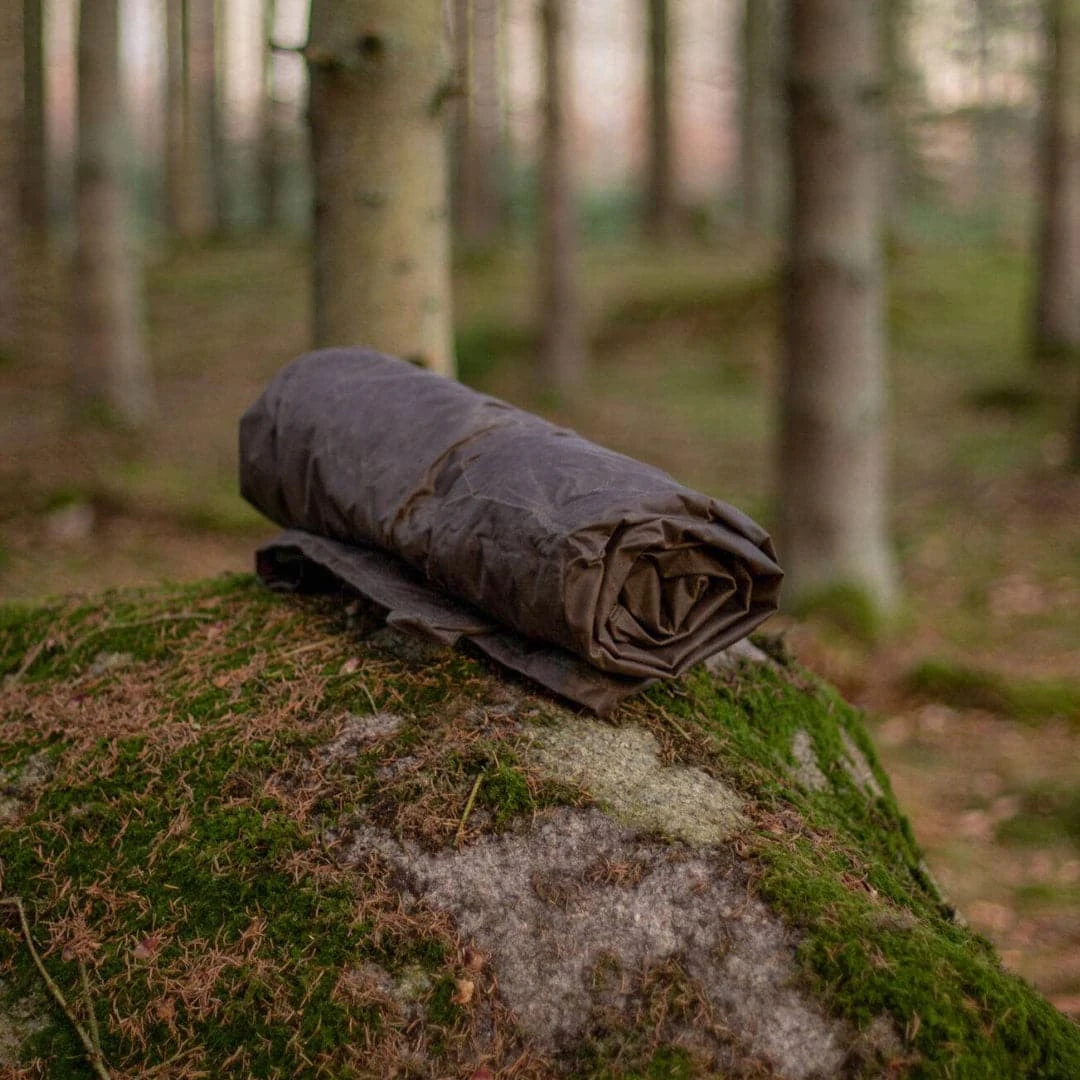 This ground cloth is an amazing addition to the equipment that any bushcrafter, camper, outdoorsman, or nature lover needs. This functional vintage 2m x 1.5m (6’6″x 4’5″) oilskin ground sheet stands up well against wet and dirty ground, 4 tie-outs for use as a compact tarp and also features a 80% wool 20% cashmere lining, which makes it an excellent bed roll, blanket, cape, sitting, sleeping or working area.
