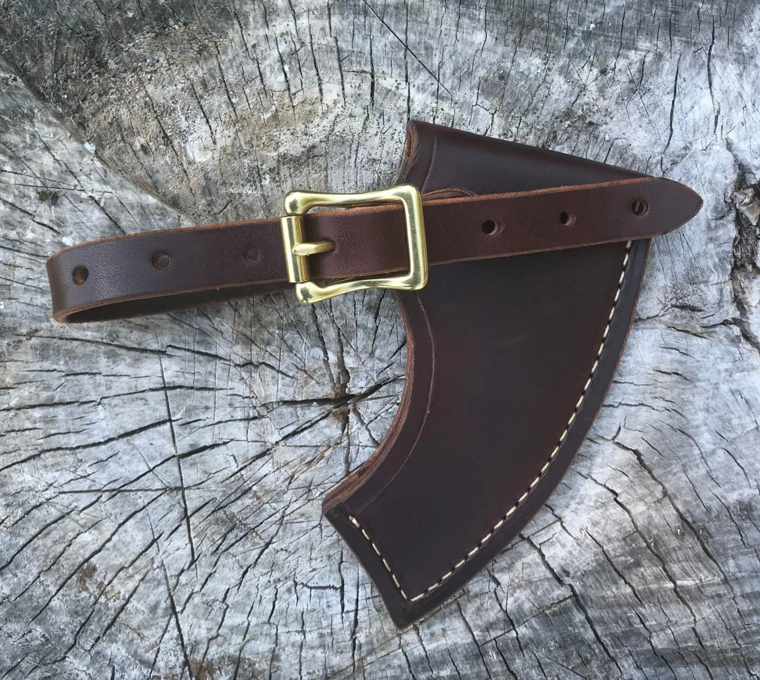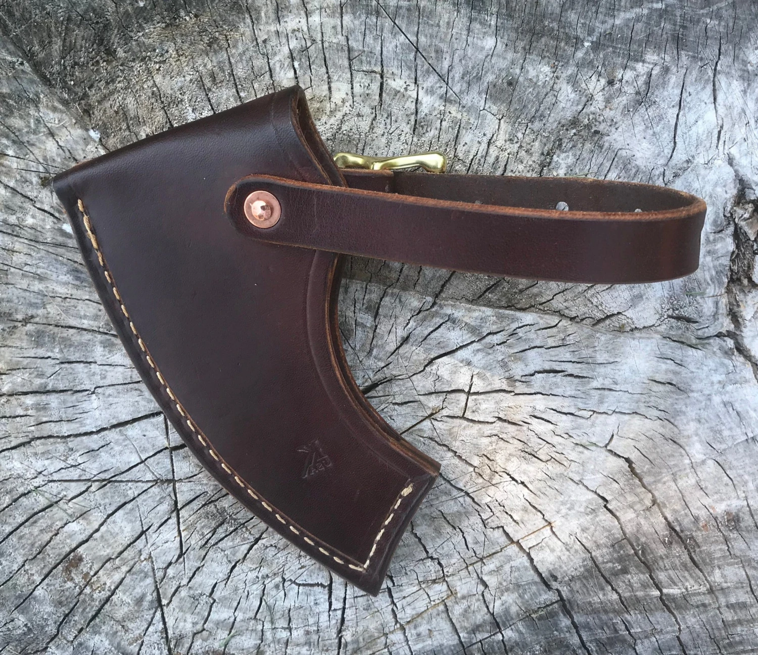100% Leather with brass buckle & copper rivot. Fits the American Felling Axe by Hults Bruk