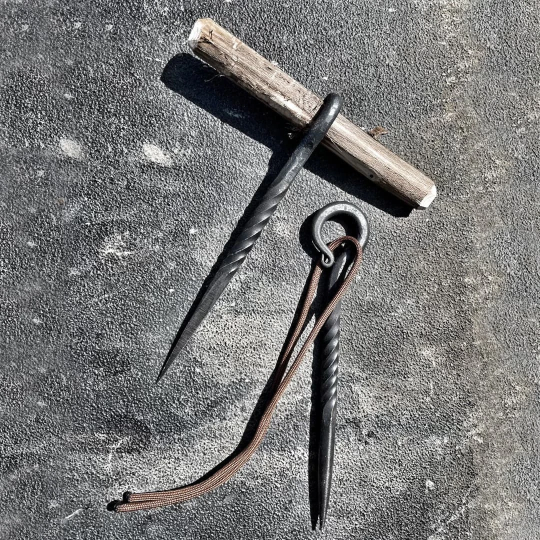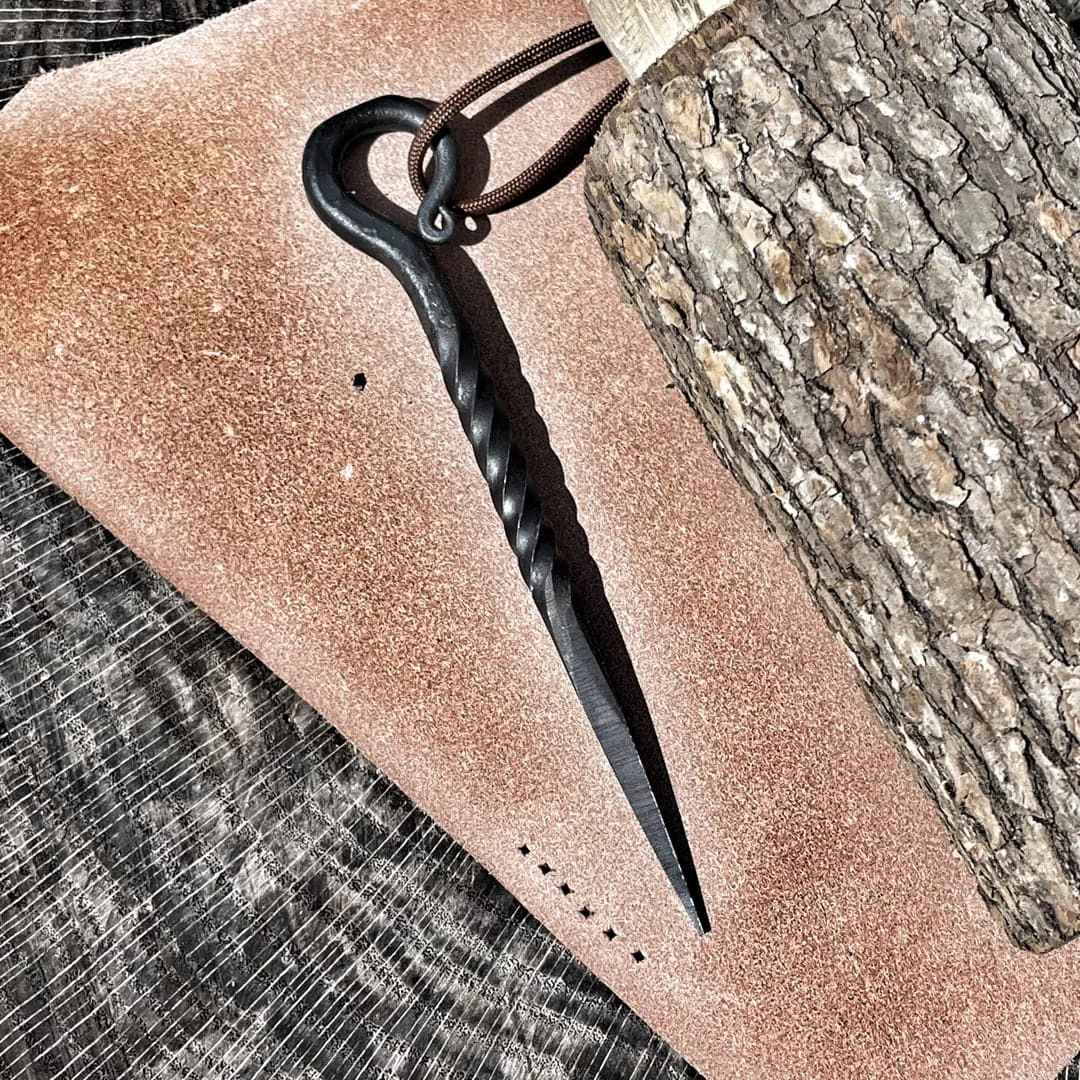 The Craft Awl Set by the Pathfinder Forge and Tool provides two tools useful in many Bushcraft projects. The square awl is used for punching and drilling. A “T” handle can be added to either tool for leverage. A flat surface has been added for use with a baton when necessary for punching through heavy leather material. The round Marlin spike/fid is designed to have no sharp edges for working with ropes or basket materials.